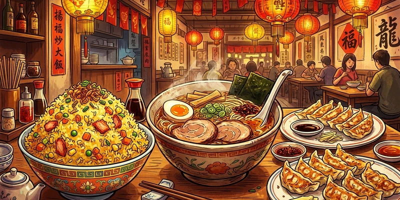 地元で愛される町中華のデカ盛りメニュー。チャーハン山盛り、餃子大量、ラーメン特盛。