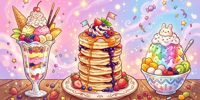 甘党のためのデカ盛りスイーツガイド。巨大パフェ、超厚パンケーキ、山盛りかき氷を紹介。